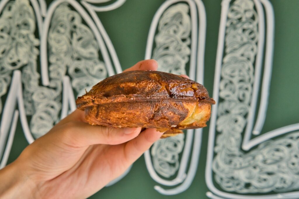 チーズがびよ〜んと伸びる瞬間は、まさに幸せの瞬間です。ペニーレインの植月さんと木村雄太(Shake Tree)は、このイベントを通じて、両店舗の遊び心を知った上で、このパンとバーガーを味わってほしいと語っています。