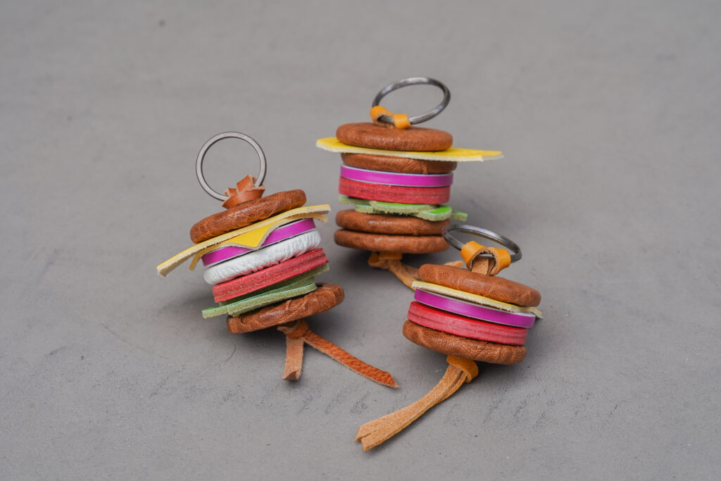 長年、最前線で「本物の革」に触れ続けてきた職人の目があるからこそ、このプロジェクトは始まりました。 数あるストックの中から、実際の食材が持つ質感や色の個性を表現するために、一パーツずつ、表情の異なる革を厳選しています。