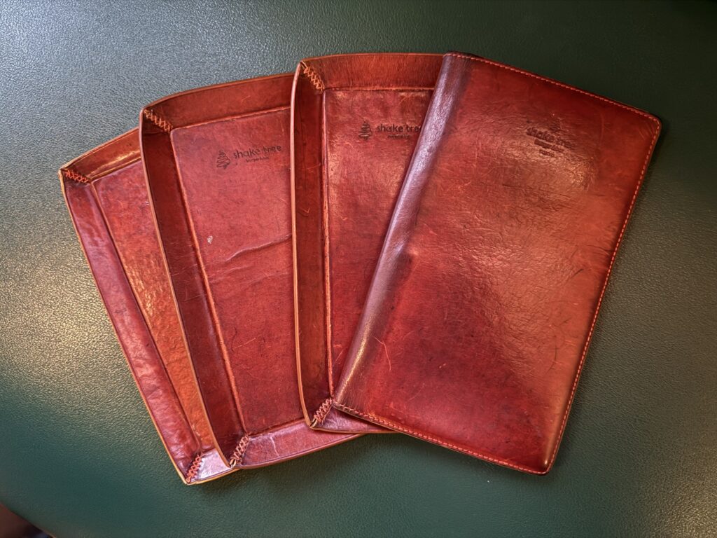 実は、Shake Treeの店舗で日頃から大切に使用している「オーダーパッド」と「キャッシュトレイ」は、野村製作所の手によって仕立てられたもの。